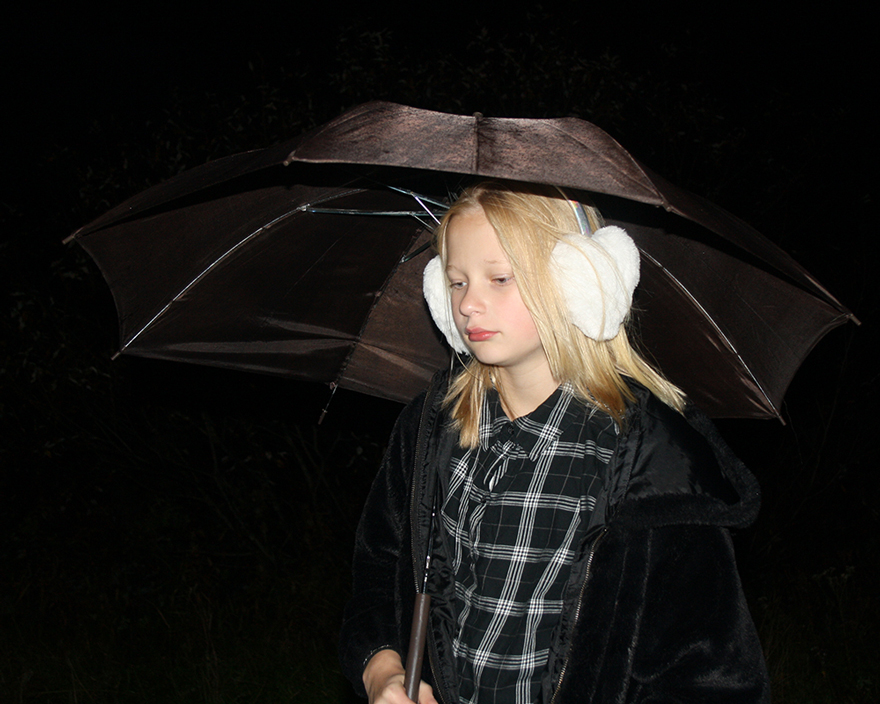 Ensimmäisen opiskeluvuoden alussa harjoittelimme valokuvaamista ja järjestelmäkameran käyttöä. Kuvia ei saanut muokata kuvankäsittelyohjelmalla, vaan kuva tuli rajata ja siihen tuli vangita haluttu tunnelma jo kuvaushetkellä. Pyysin pikkusiskoni malliksi, ja ohjasin häntä henkilökuvissa. Pimeys toi haasteita tehtävään, mutta mielestäni onnistuin siitä huolimatta oikein hyvin.